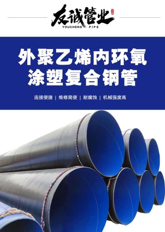 運笨重的鑄管、鋼管等傳統管材.友誠牌內外涂塑環氧樹脂復合鋼管產品特性:優良的承壓性能。優良的抗腐蝕性能熱膨脹系數小,不收縮變形。表面光滑、流體阻力小,不結垢、不宜滋生微生物。其環氧涂塑層更有效的解決了輸水、埋地和酸、堿、鹽對金屬管道的腐蝕。相關產品